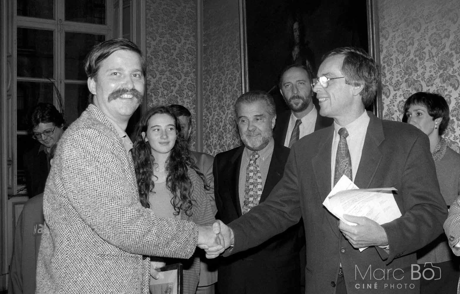 Hubert Toint (réalisateur producteur), Sandrine Blancke (actrice), René Fauvel (UGC) & Jean-Louis Close (président FIFF) 1993