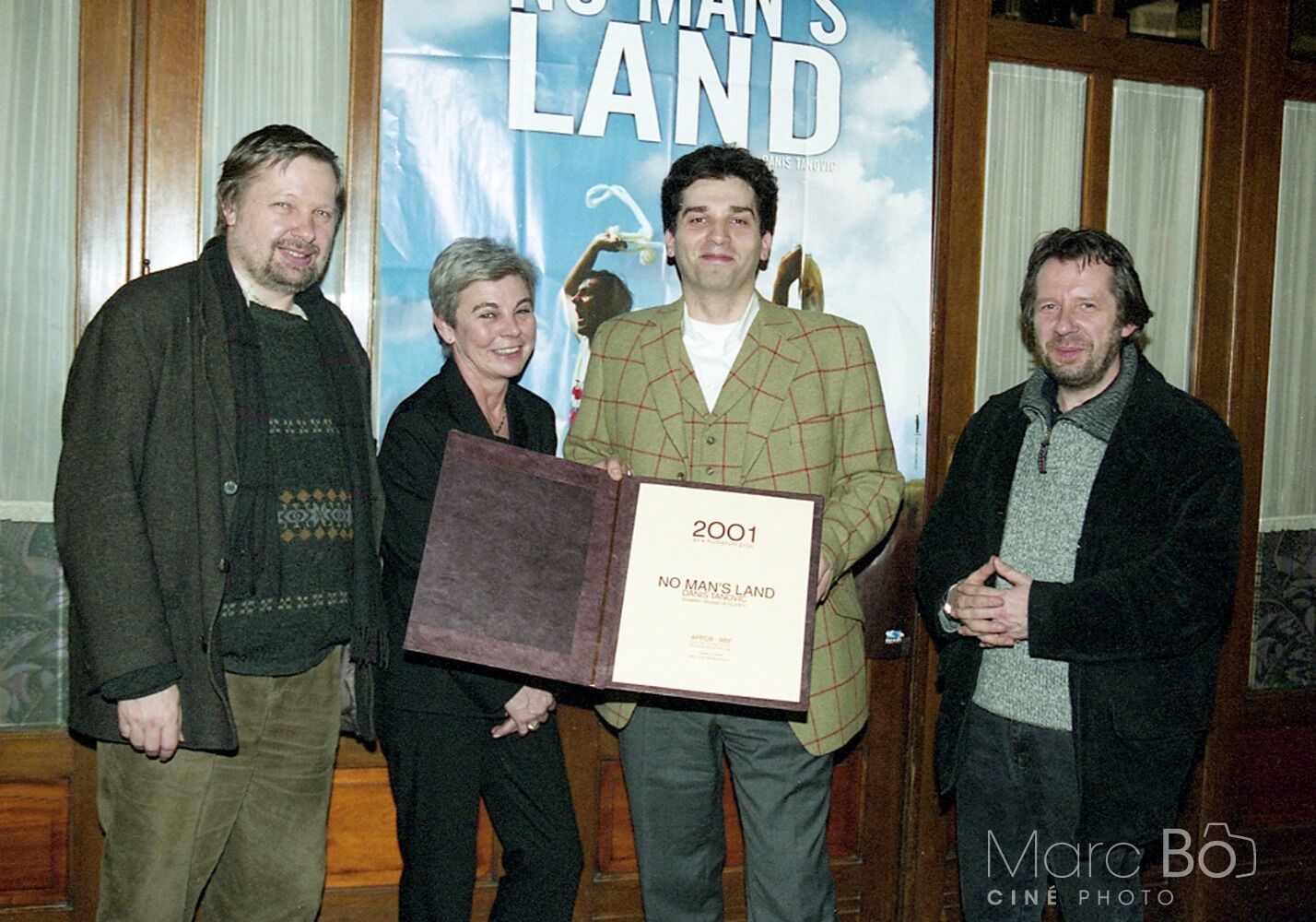 Guido Convents (journaliste), Marion Hänsel (productrice), Denis Tanovic (réalisateur) & Ronnie Pede (journaliste) 2001